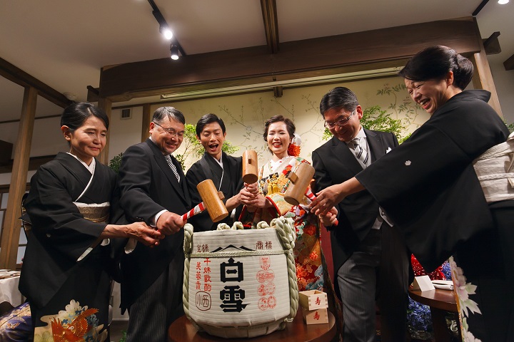 For example, ‘Omiki,’ the sake offered to deities, is placed on the altars of Shinto shrines and in individual homes. Sake is drunk on special occasions such as New Year’s parties, wedding ceremonies, rituals for driving away evil spirits, and groundbreaking ceremonies. Even today, a wooden barrel containing sake is sometimes placed at the front during wedding parties or company opening ceremonies. The top lid of the barrel is smashed and opened by a wooden hammer. This ceremony is called ‘Kagami-biraki’ (opening of the mirror), where ‘kagami,’ meaning mirror, refers to the round-shaped lid of the barrel. Opening the barrel symbolizes unlocking the world of luck, so this is considered a form of prayer. After this, the holy sake is poured into the glasses of all the participants, who drink it together, wishing for God’s protection.