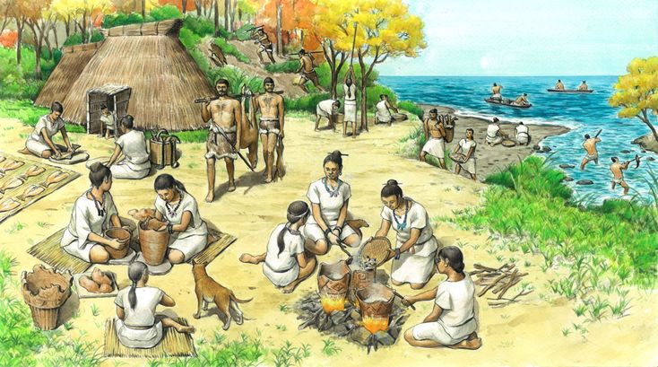 In the mid Jomon period (4000-5000 B.C.), the climate of Japan changed from the Glacial Period to the Warm Period, allowing people to obtain enough food from the sea and mountains. As a result, the population increased and conflicts over food decreased, leading to a more peaceful lifestyle. Later, in the Yayoi period, the introduction of rice cultivation by people from overseas shifted society to an agricultural lifestyle centered on rice paddies. This led to the formation of villages where people needed to cooperate as a group, and to the development of a society based on a seniority order system.