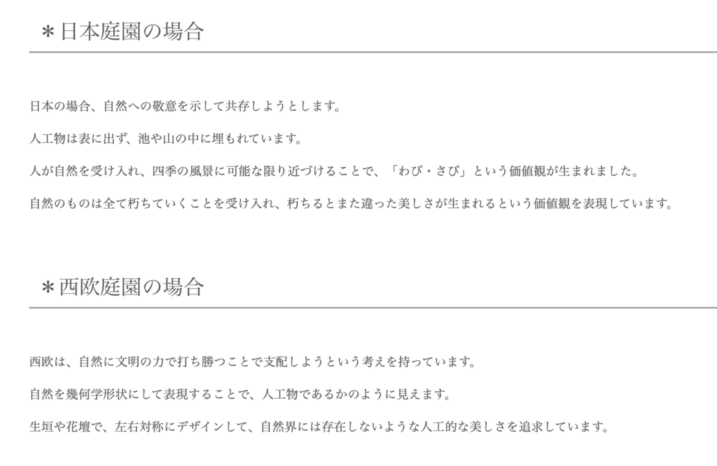 Differences in Gardens between Japan and the West
