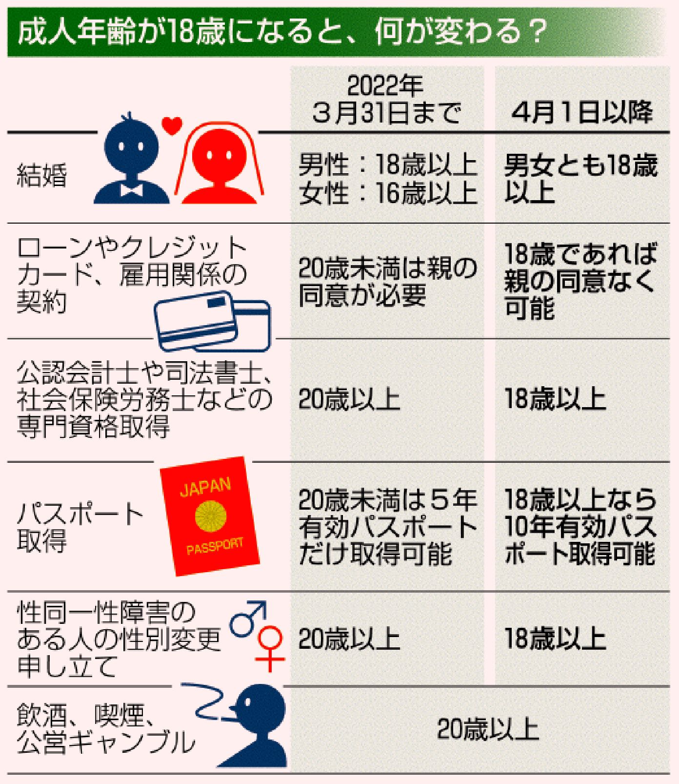 The traditional definition of 20 years old as the beginning of adulthood, established during the Meiji Period, was reconsidered. In April 2022, a revised civil law was enacted to lower the age of adulthood to 18.