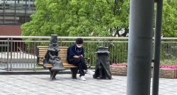 It is a manga about people struggling against giants attacking them for unknown reasons. Hita City, Oita Prefecture, is the hometown of the author Hajime Isayama. The city has used his manga to boost the local economy. First, it built a bronze statue in front of Oyama Dam, the large dam in the city. The statue depicts three characters in their childhood looking up at the wall of the dam. This scene mirrors an image from the manga or anime, where people look up at the face of a giant appearing over the high guard wall.