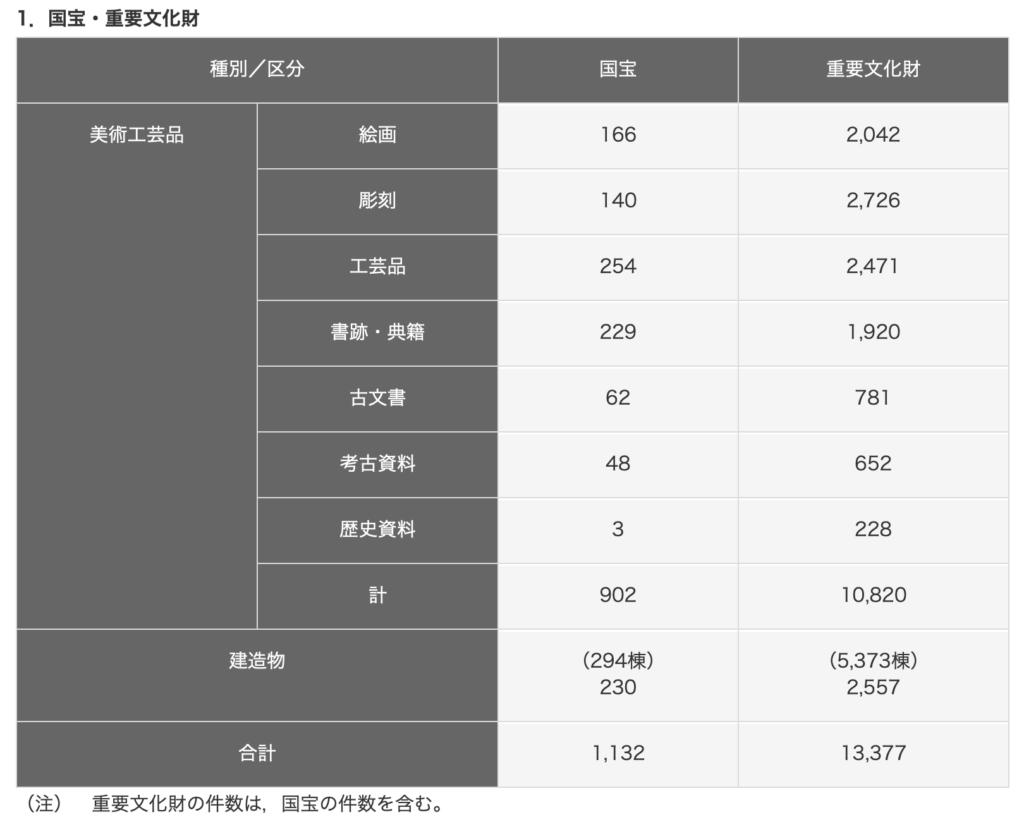 National Treasures refer to cultural assets designated by the nation, specifically by the Minister of Education, Culture, Sports, Science and Technology, due to their high value among the tangible cultural properties specified by the Cultural Properties Protection Law.