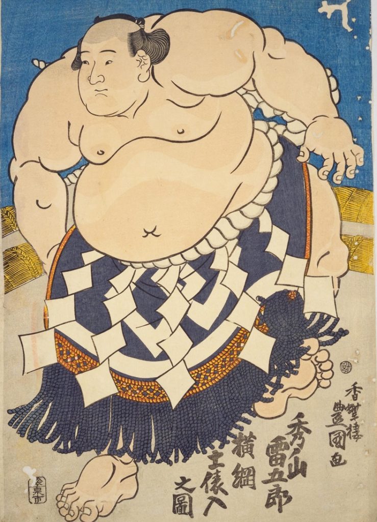The first documented evidence of sumo history dates back to just before the 16th century; however, it is mentioned in earlier tales. ‘Kojiki,’ compiled in 712, describes sumo during a strength competition scene within the myth story of Kuniyuzuri (transfer of the land). After the Nara period, sumo was often held as a ritual for predicting the harvest in the coming autumn, and it also took place in the imperial court to pray for a good harvest and a peaceful society. In the Edo period, sumo was held in temples and shrines to raise funds for the repair or construction of halls and buildings. These fundraising events became very popular among the commoners. Later, professional wrestlers emerged, and the rules were established. This style still lasts today. One of the typical venues was Ekoin temple in Ryogoku, Edo, so near there, the Sumo tournament auditorium was built, and now this “Ryogoku National Sport Auditorium” is the center of the professional sumo world.