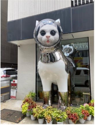 It looks like an astronaut cat. Later, I looked it up and found that this object has gained some recognition. Behind it is a hotel called We Base Hakata, which was awarded the Good Fukuoka Scenery Award a few years ago.