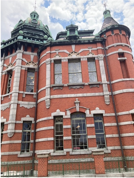 Everyone recognizes this red building. It originally served as the Kyushu branch office of the Nihon Insurance Company, but it now functions as a facility providing information about Fukuoka literature. The building was designed by Kingo Tatsuno and Yasu Kataoka. Kingo Tatsuno is best known as the architect of Tokyo Station.