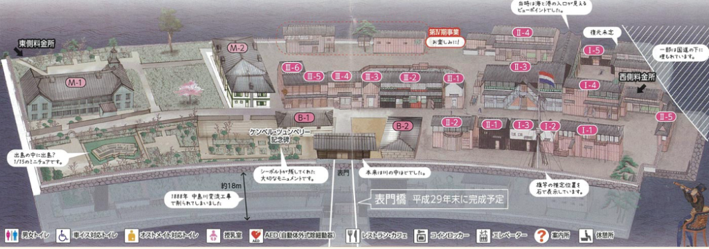 Dejima is an artificial island built as a trading port for Western nations during the Edo period. During Japan’s approximately 200 years of national isolation, it served as the country’s only window to the West. The island was later reclaimed during the Meiji period. Today, it is designated as a National Historic Site as the remains of the Dejima Dutch Trading Post, and Nagasaki City has been carrying out restoration work to preserve its historical significance.