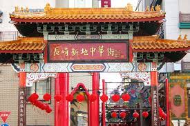 This is the third-largest Chinatown in Japan, after those in Yokohama and Kobe. Centered around a single crossroads, the district is compact—each of its main streets can be walked from end to end within about five minutes. The area is lined with Chinese restaurants and souvenir shops, decorated prominently in red (红色, hóngsè) and yellow (黄色, huángsè). In Chinese culture, red symbolizes luck and vitality, while yellow represents royalty and imperial heritage.