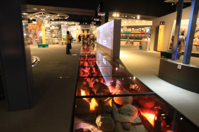 The museum mainly displays the remains, documentary videos, and photos of the disaster caused by the eruption of Mt. Unzen in 1991, along with showcases of the local people’s efforts to recover. You can experience the immense speed of pyroclastic flows by watching a path under the floor, where red light moves rapidly to simulate their movement.