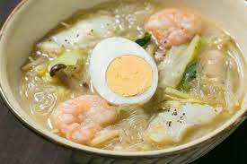 Taipien is a noodle dish from Kumamoto. While similar to Nagasaki’s champon—featuring a rich broth with vegetables and seafood—it is distinct for its use of translucent harusame noodles made from bean starch. A characteristic topping is the deep-fried egg, known as 虎皮蛋 (Hupi Dan) or “tiger skin egg,” prized for its crispy, textured surface. The dish reflects Chinese culinary influence adapted to local Kumamoto tastes.