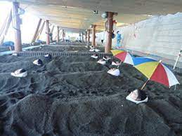 • The hot spring water is not seawater, but it is drawn from deep underground and contains marine minerals. This allows the sandy beach to be used as a natural sauna.