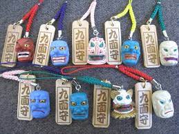 Kumenmamori means Nine Faces of Good Luck Charm. Kirishima Shrine provides nine kinds of blessings. The shrine sells a small head figure of a different color for each blessing.  Some try to get all the nine to get to the utmost happiness.