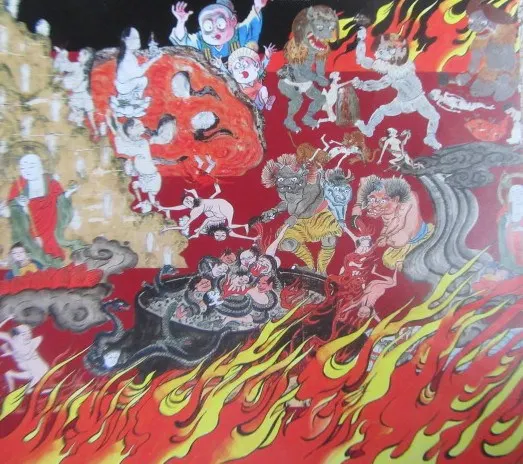 It is said that the basic image Japanese people have of Jigoku was formed by the descriptions of Jigoku in ‘Ojo-syu,’ a book of teachings by the monk Genshin in the 10th century. He described it in such vivid and cruel detail that readers were very impressed and decided to behave well. Many pictures of Jigoku were painted in temples, based on the monk’s descriptions.