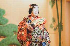 The performers are all male. They even play female roles. These actors are called “onnagata.”