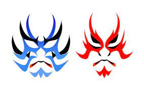 2 Kumadori: Drawing Makeups. The actors paint the lines patterned according to the playing part on the face. It shows the exaggerated muscles and nerve lines.